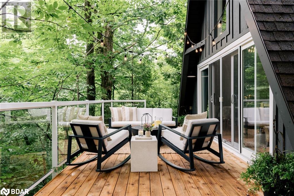 Spend the weekend at this ultimate Scandinavian-style retreat, where a wood-burning hot tub bubbles beneath the stars, a cedar sauna invites you to unwind, and a peaceful 1-acre setting wraps you in trees with a gentle creek flowing nearby. Just under 10 minutes from Durham's shops, restaurants, grocery stores and community centre, with golf, ski hills, snowmobiling trails, a drive-in theatre and a casino all within reasonable driving distance, this location gives you room to breathe, with adventure and amenities nearby. The bold black A-frame exterior stands out with striking curb appeal and a spacious deck with glass railings overlooking the serene landscape and flowing creek. Vaulted ceilings, wide plank flooring and wood-accented walls frame the cozy living and dining space, where a crackling woodstove and sliding doors to the deck complete the vibe. The fully renovated kitchen features quartz countertops, open shelving, an undermount sink, modern white cabinetry and pot lights. A floating vanity, glass wall shower and forest-facing window give the bathroom a spa-like feel, while the main floor bedroom and a tranquil loft bedroom with treetop views offer just the right amount of space to relax. An efficient heat pump adds extra comfort. Beautifully finished, full of character and completely turn-key, this getaway is the kind of place that makes you slow down and stay a little longer. (id:6289)