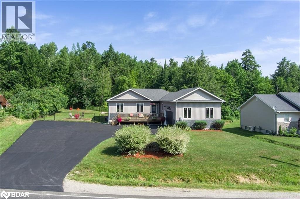 Welcome to this well-loved raised bungalow, constructed in 2016 and nestled in the peaceful, semi-rural community of Moonstone. Just minutes from the ski slopes of Mount St. Louis and surrounded by nature, this home offers the perfect blend of rural charm and modern convenience. Set on a private, treed 0.342-acre lot, the property boasts exceptional outdoor living with two spacious decks, a pergola, a Tiki bar, and an 8-person Arctic Spa hot tub (2021)—ideal for year-round enjoyment and entertaining. The double garage provides 524 sq ft of functional space, while the newly paved driveway easily accommodates multiple vehicles and all your recreational toys. Inside, the bright and open-concept main floor features a stunning great room with a cozy gas fireplace and rustic mantel. This great room seamlessly connects the kitchen and dining area. The kitchen is truly the heart of the home, showcasing timeless shaker-style cabinetry, gleaming quartz countertops, stainless steel appliances, a new upright freezer, and a center island perfect for meal prep or casual gatherings. A large pantry adds convenience and ample storage. Thoughtful lighting, stylish fixtures, and a warm, welcoming layout make this home ideal for entertaining. The main-floor laundry room, with a sink, also functions as a mudroom, offering direct access to both the oversized built-in garage and the fully finished lower level. Downstairs, the finished walk-out basement features large look-out windows, a second fireplace in the family room, two generously sized bedrooms, and a full 4-piece bathroom—perfect for guests or the teens. With the attached overhead projector & speakers, movie night will be memorable. With five bedrooms, three full bathrooms, and easy access to local schools, parks, and major city amenities (just 20 minutes away), this home has it all for ultimate family living. Whether you're an outdoor enthusiast or simply seeking a peaceful retreat, this Moonstone gem is not to be missed! (id:6289)
