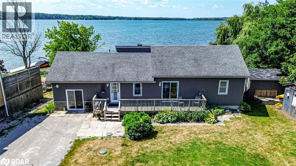 ESCAPE TO ORR LAKE – FOUR-SEASON FUN WITH 110 FT OF SHORELINE, A DOCK & MULTIPLE OUTBUILDINGS! Get ready to live the waterfront dream on Orr Lake with 110 feet of clean, shallow shoreline and incredible west-facing views for sunsets you’ll never forget! Set on a deep 241-foot lot with over half an acre to enjoy, this four-season bungalow is positioned closer to the water than most, offering unbeatable lake views from multiple rooms and a bright, open-concept interior that’s as charming as it is functional. Whether you're hosting friends or soaking up the serenity, you'll love the indoor-outdoor lifestyle with three decks, a gazebo, a dock, a sitting deck at the water’s edge, and even a super cute lakeside chapel/change room for storage and getting ready to dive in. The inviting kitchen features warm cabinetry, breakfast bar seating, and clear sightlines into the living and dining rooms, while built-in cabinets and shelves add character and neutral tones keep the vibe relaxed and welcoming. The main level offers two bedrooms including a primary with a double closet, while the upper-level loft space or potential third bedroom is perfect for play, creativity, a hobby nook, or added storage. The finished basement offers even more space with a large rec room made for games, movie nights, and rainy-day fun, plus a third bedroom for guests. A bonus bunkie with built-in bunk beds makes hosting easy. Set on a municipally maintained road, just a short walk to the Orr Lake General Store and LCBO, with year-round recreation including swimming, kayaking, boating, skating, snowshoeing, and Orr Lake Golf Club nearby, and under 20 minutes to Barrie. Why settle for ordinary when you can wake up to lake views and live the cottage dream all year long? (id:6289)