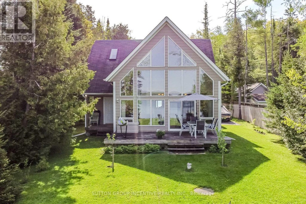 Lakefront Living on Orr Lake! Enjoy breathtaking views and year-round recreation from this lovely 1.5-storey home offering approximately 50 feet of waterfront with a 90 ft Bertram dock perfect for boating, fishing, or simply soaking in the serene surroundings with southwest views. This 3-bedroom, 2-bathroom, attached 2 car garage home built by Viceroy Homes features 1274 sq ft of well-maintained living space. Open living room and kitchen with panoramic views of the waterfront through the cathedral floor to ceiling windows. The main floor bedroom and full bathroom offers easy living while the upper level offers additional privacy for family or guests. The main floor walks out to a wooden deck which is ideal for entertaining, and the front yard offers additional space down to the lake to spend making memories and family time. Super location for both outdoor summer or winter activities with ski resorts Mount St Louis and Horseshoe Valley, snowmobile trails, golfing, biking and walking trails all nearby and easy commute to Hwy 400 just 10 mins. Whether you're looking for a weekend retreat or a full-time residence, this property is perfect for your relaxing lakeside living. (id:6289)