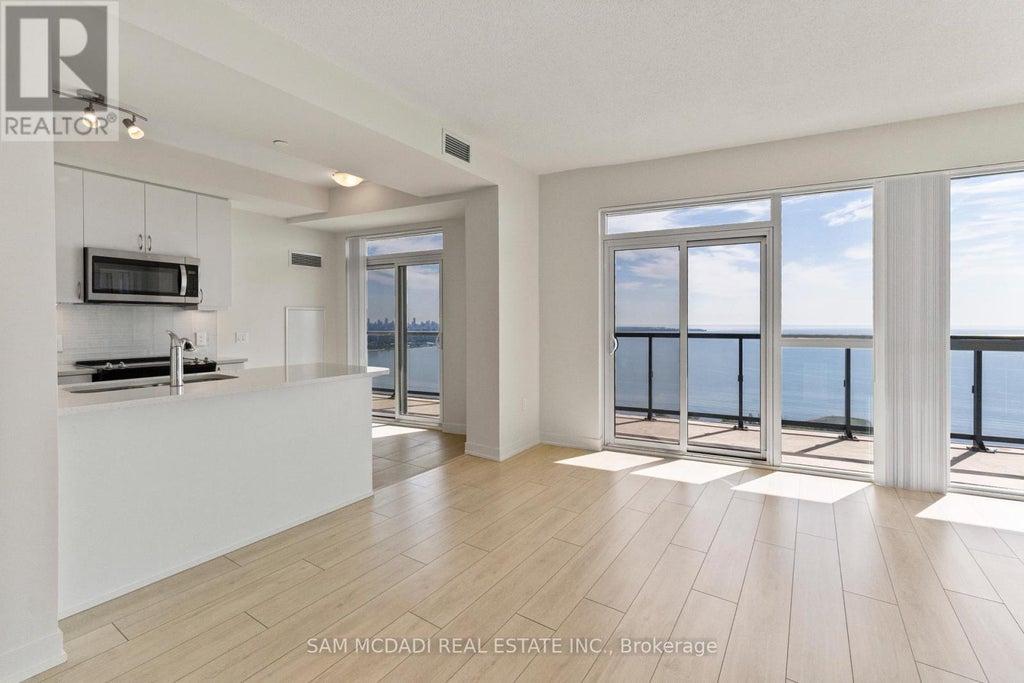 Welcome to Water's Edge, a luxury 2 + 1 bedroom, 2 bathroom condo along the shore of Toronto's Humber Bay on Lake Ontario. Enjoy the best of waterfront living in this beautiful condo with sweeping, unobstructed views of Lake Ontario and the Toronto skyline. Sunlight pours through the floor-to-ceiling windows, filling the space with warmth and showcasing the incredible scenery. The wraparound balcony is perfect for starting your day with a coffee, winding down with a glass of wine, or simply taking in the peaceful views. Whether you're relaxing after a busy day or entertaining friends, this home strikes the perfect balance of style, comfort, and breathtaking surroundings. Featuring 2 bedrooms, 2 bathrooms, and a versatile den, the unit is thoughtfully designed to adapt to your lifestyle. Building amenities include indoor pool, whirlpool, indoor cool plunge pool, men's and ladies change rooms and saunas, fitness room, spin room, yoga room, billiards room, virtual games room, theatre, party room with kitchen bar and lounge, outdoor terrace, library, pet grooming room, 24 hour concierge, guest suites. Unit comes with 2 parking spots, side by side on P2 and a platinum locker approximately 100 sq ft, with a steel door, concrete walls, dedicated light switch with motion detector and electric outlet. (id:6289)