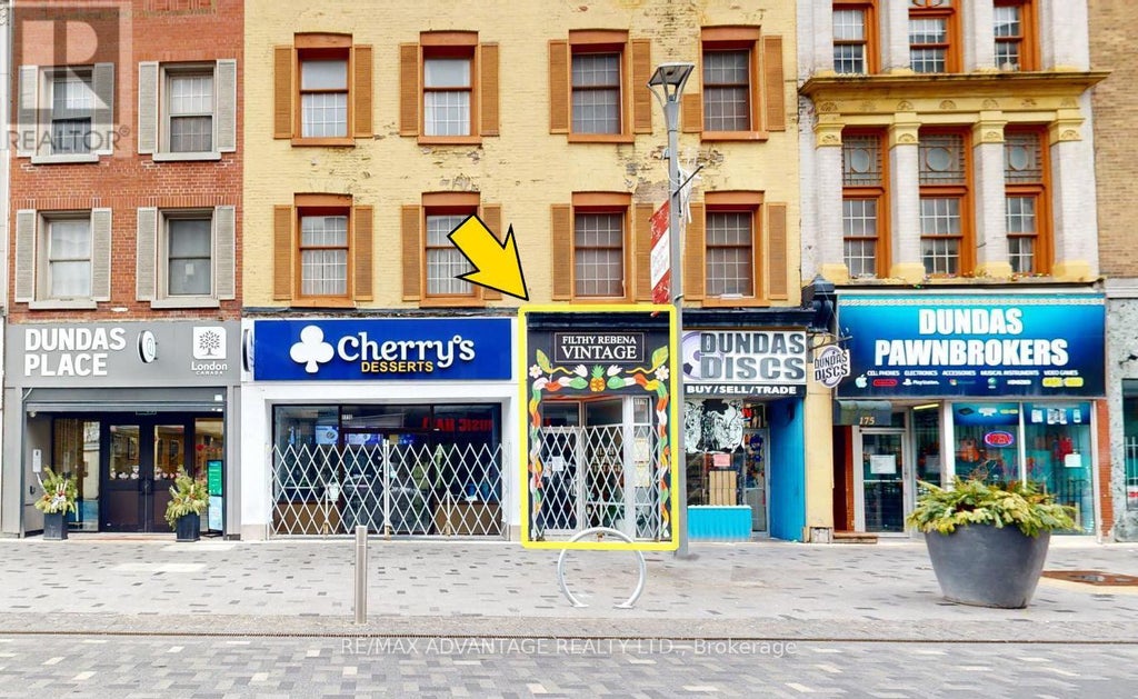 1,100 sf retail unit-Centrally located between Clarence and Richmond fronting on Dundas south side. Building with exceptional character. Desirable location opposite Forest City London Music Hall of Fame & London Music Hall Music Complex Venue. DA zoning allows for wide variety of uses. Monthly rent of $1,970.00 plus separately metered utilities plus HST. (id:6289)