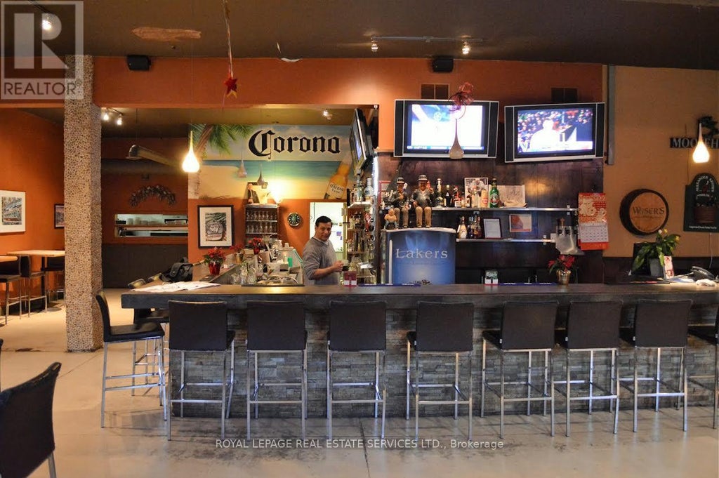 Great Location for large commercial space Appx 8,800 Sq Ft, with 20 ft + ceilings in the large back room, On a 1 acre lot For lease, Previous famous restaurant "Lakers Muskoka" Includes A Large Bar, Indoor And Outdoor Patio, Dining Room, Game Room, Event Space, Cold Room For Beer, Disco Lights and more, Licensed For 225 Inside And 55 On Outside Patio. Zoned C2 which provides many uses including restaurant, offices, event centre etc., Plenty of parking, Close to Highway 11. This opportunity has a great capability to open your own certain scale of Restaurant- Bar and Grill and local event centre and more... (id:6289)