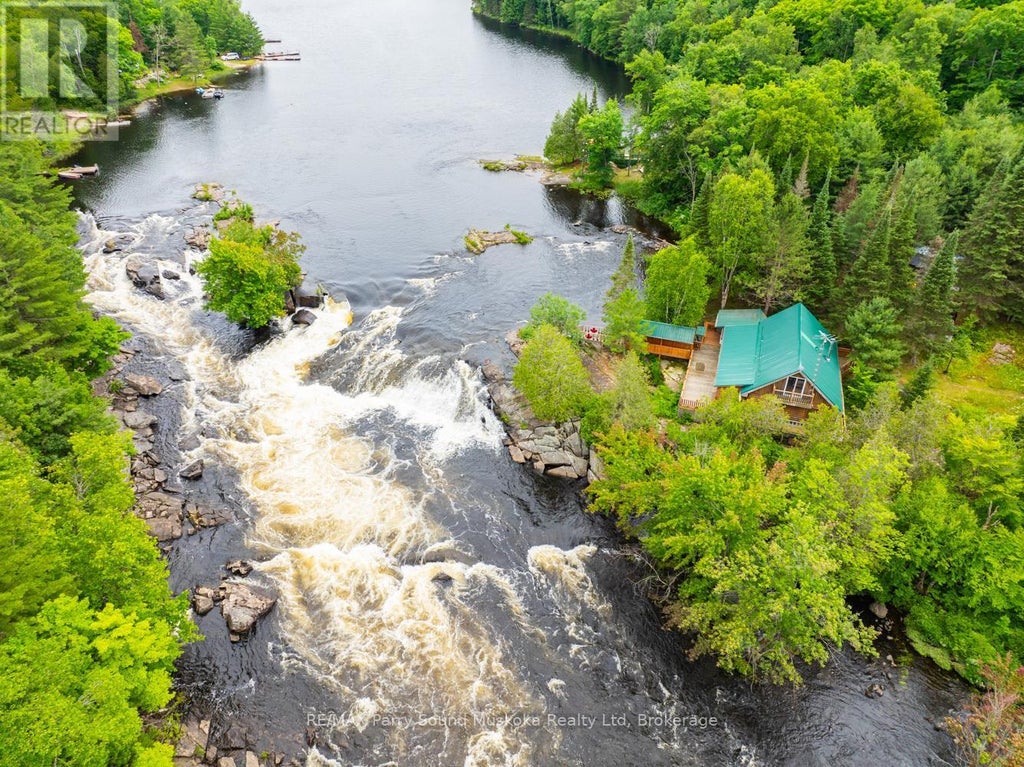 **Riverside Retreat on The mighty Magnetawan River - Perfect for Nature Enthusiasts** Nestled on the Magnetawan River, this charming White Cedar log cottage offers a perfect escape into nature. With 471 feet of quality river frontage, including captivating white water rapids just steps from the cottage, this property is a haven for outdoor enthusiasts. Access to your dream property is a breeze with deeded parking on the mainland and a convenient one-minute boat ride across the river to the property. The cottage itself boasts a low-maintenance metal roof and comes fully turnkey, complete with almost everything you need for immediate enjoyment. Inside, the ambiance is cozy and inviting, featuring ductwork and an existing furnace, along with a wood-stove for warmth and rustic charm. The property is 6 acres and backs onto thousands of acres of Crown land, ensuring unparalleled privacy and endless exploration opportunities. Whether you're an avid hiker, a canoeing enthusiast, or looking for amazing fishing, this property caters to all nature lovers. Imagine exploring trails, embarking on a thrilling white water rafting adventure, or simply casting your line into the Magnetawan River for a day of great fishing. Don't miss out on this incredible opportunity to own a piece of paradise where the wonders of nature are right at your doorstep. (id:6289)