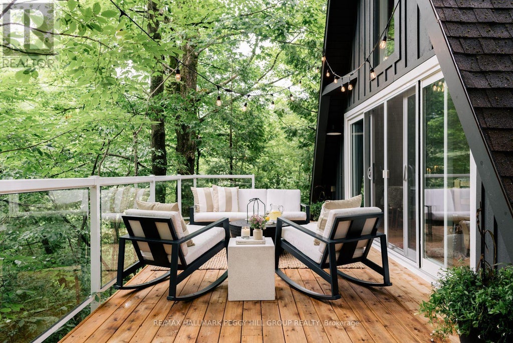 COZY A-FRAME RETREAT WITH MODERN FINISHES, HOT TUB, SAUNA, & A CREEK RUNNING THROUGH 1 PRIVATE ACRE! Spend the weekend at this ultimate Scandinavian-style retreat, where a wood-burning hot tub bubbles beneath the stars, a cedar sauna invites you to unwind, and a peaceful 1-acre setting wraps you in trees with a gentle creek flowing nearby. Just under 10 minutes from Durham's shops, restaurants, grocery stores and community centre, with golf, ski hills, snowmobiling trails, a drive-in theatre and a casino all within reasonable driving distance, this location gives you room to breathe, with adventure and amenities nearby. The bold black A-frame exterior stands out with striking curb appeal and a spacious deck with glass railings overlooking the serene landscape and flowing creek. Vaulted ceilings, wide plank flooring and wood-accented walls frame the cozy living and dining space, where a crackling woodstove and sliding doors to the deck complete the vibe. The fully renovated kitchen features quartz countertops, open shelving, an undermount sink, modern white cabinetry and pot lights. A floating vanity, glass wall shower and forest-facing window give the bathroom a spa-like feel, while the main floor bedroom and a tranquil loft bedroom with treetop views offer just the right amount of space to relax. An efficient heat pump adds extra comfort. Beautifully finished, full of character and completely turn-key, this getaway is the kind of place that makes you slow down and stay a little longer. (id:6289)