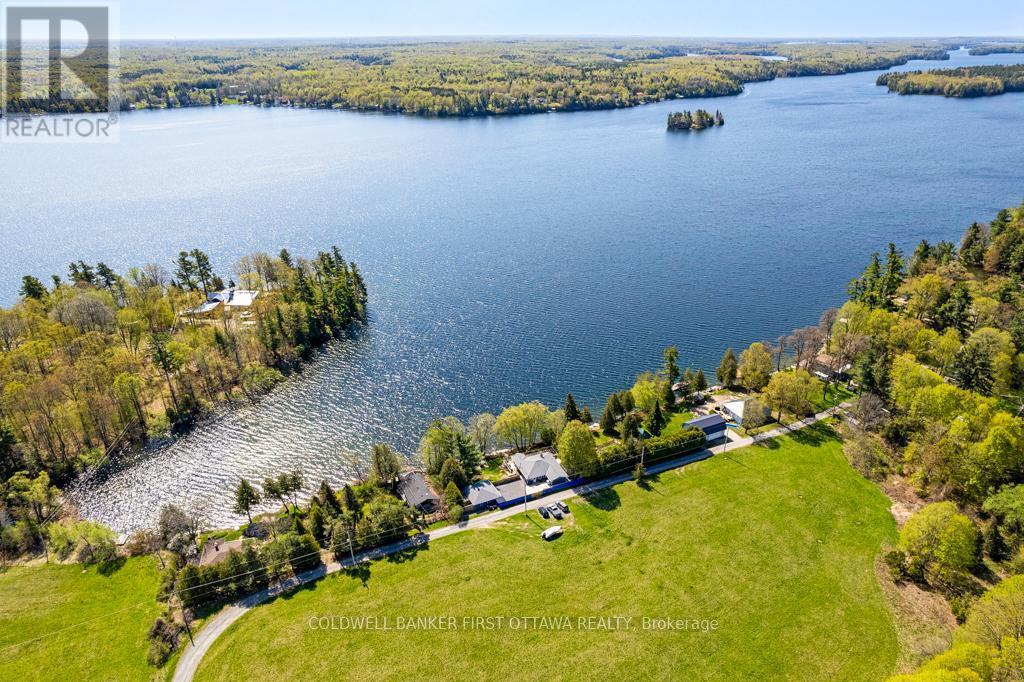 Home on Big Rideau Lake, with the most amazing lake views. Great family home on the lake or, your wonderful vacation retreat for any time of the year. Light bright bungalow offers expansive spaces inside and out for easy living - plus, the all fenced yard is perfect for pets and young children. Upgraded and freshly painted in 2024, the three bedroom, 1.5 bathroom home has large welcoming foyer with big closet. Livingroom stone fireplace includes energy-efficient pellet stove insert with new 2025 blower fan. Wide patio doors open to huge extensive deck that keeps you connected to the outdoors, facing southeast over the lake. Extra-large dining area open to living room and is adjacent to contemporary kitchen with ledger stone backsplash and lovely birch cabinetry. Relaxing den offers you extra flex space. Den also opens to sitting nook with more patio doors to the deck. Main floor powder room and laundry station. Comfortable primary bedroom with attractive tongue & groove pine ceiling. Two more good-sized bedrooms. The 4-pc bathroom upgraded 2023 with shiplap wall and rain head shower-tub. Home has heat pump for heating and, cooling with 2020 mini-split wall unit. Updated vinyl windows and sliding doors are 3 to 6 yrs old. Roof shingles new 2020. Hook up in place for a generator. Detached single car garage has hydro. Guest Bunkie completely insulated and has patio doors to its own wrap-about 2022 covered deck. For toys and tools, you have garden shed, storage shed plus small coverall. Gentle, slightly sloping, access to the 128 ft waterfront with boat lift and a dock that's 6' deep at end. Shoreline clear for swimming and is shallow for young children. Big Rideau Lake is the largest and deepest lake in the Rideau Canal System with great boating plus fishing for Lake Trout, Largemouth & Smallmouth Bass and Northern Pike. Bell hi-speed and satellite available. Cell service. Private road fee for maintenance and snow plowing is approx $400/year. Just 15 mins to Perth. (id:6289)