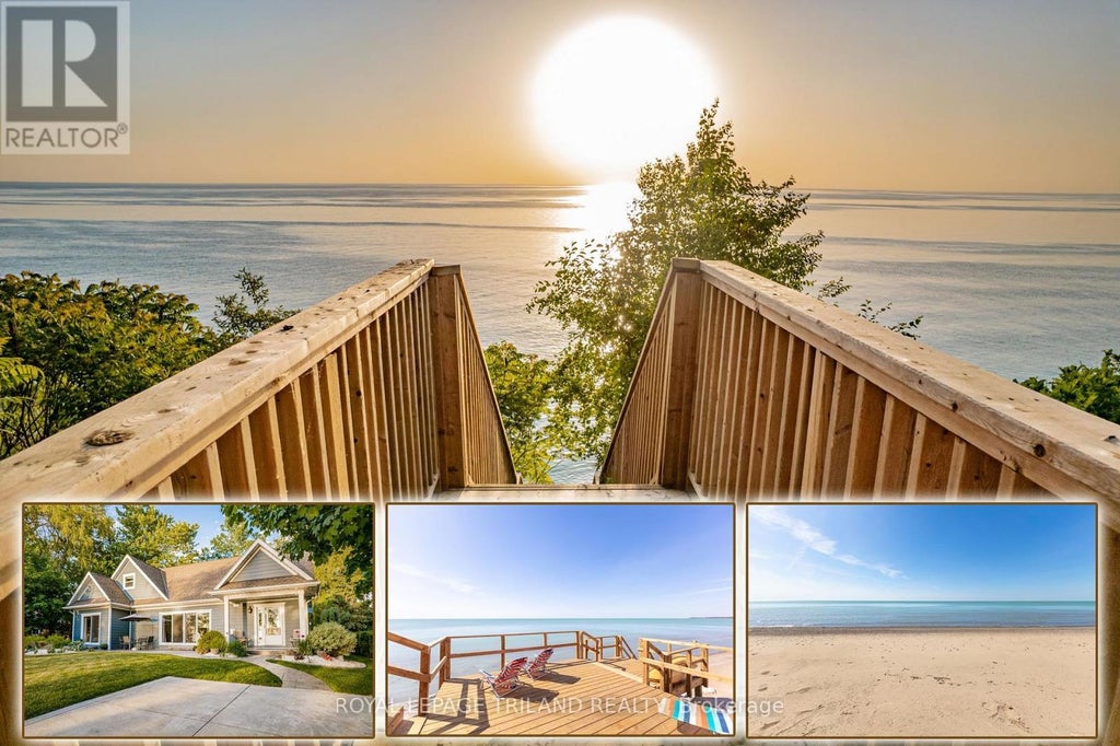 GRAND BEND AREA LAKEFRONT | MAGAZINE WORTHY LAKE & SUNSET PANAROMAS. Views so incredible, you're going to have Netflix knocking on your door to film a movie here! The absolutely & irrefutably breathtaking picture perfect scenes from the lakefront windows & top of bluff to the incredible & brand new lake level deck at a secluded sandy beach are simply sensational - a gift from the lakefront heavens overlooking sparkling Huron waters. And, you get a spectacular 10 yr young custom home to boot! This unique & pristine lakefront parcel assembly, a rare package that includes 2 propertis, is as tight as a pin & ready to move in! Along the shoreline, you get a 75' wide lakefront parcel w/ premium engineered erosion prevention & a new lake level deck & stairs to the beach. Then, also fronting the lake just beyond a small laneway (used only by 1 other owner) is a 2nd 75' wide parcel w/ an impressive open-concept 2014 custom-built 4 season/3 bed beach house + a winterized bunky (4th bedroom). From the fantastic hardwood flooring, soaring vaulted ceilings in the great room, & the granite/cherry kitchen to the vast lakefront master suite assembly w/ glass & tile shower, gas fireplace, main floor laundry, & the dining area (was planned to be 4th bed in house, 5th w/ bunky), this place is perfect, & it comes TURNKEY w/ furniture, appliances, kitchenware, decor, camera system, the list goes on! The smart design has nearly every lakeside window framing in this stunning setting for year round enjoyment. The fantastic landscaping & exterior feature stamped concrete, healthy lawns, perennial gardens, 2 firepits, lifetime Hardie board siding, gas generator, mature trees, & max privacy w/ a permanent green space park at the back. You get all this + private access to a gorgeous sandy beach, world class sunsets, & SUPER LOW PROPERTY TAXES! Just an easy 6 min drive south to everything you need in Grand Bend's downtown centre, this quiet & peaceful location provides maximum lakefront value! (id:6289)