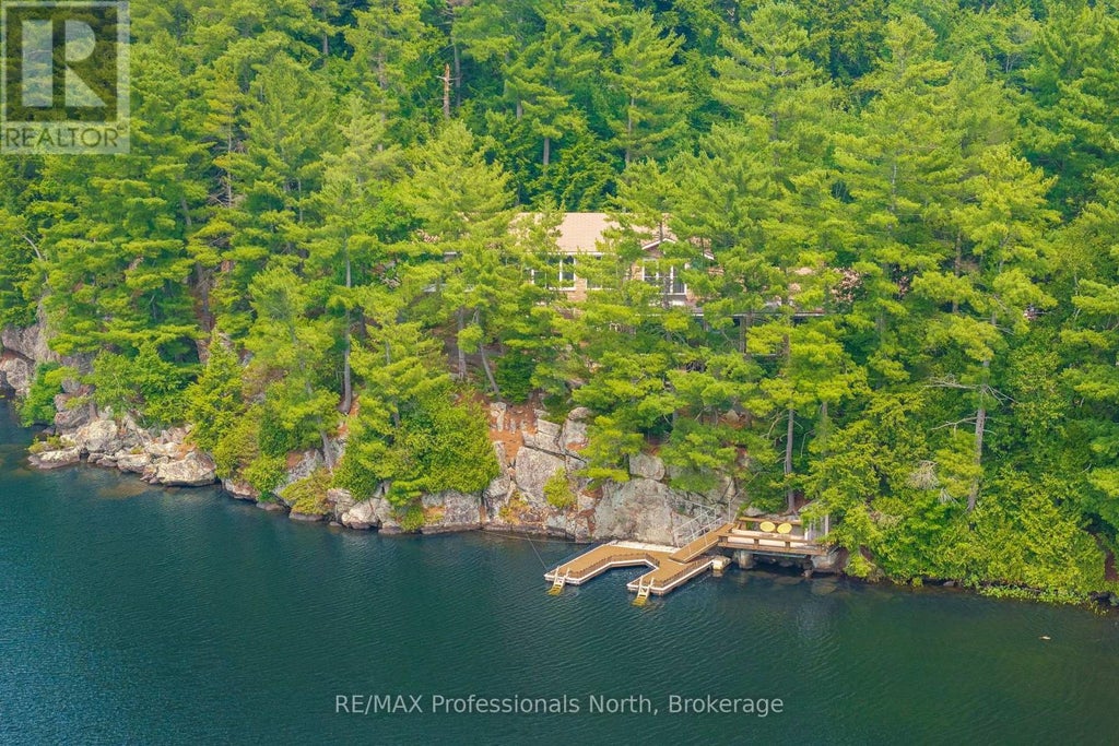 Welcome to Wren Lake, where tranquility meets timeless design. Nestled on 6.8 acres with an impressive 440 feet of pristine shoreline and coveted western exposure, this property offers the ultimate in peace, privacy and sunset views. Thoughtfully designed and meticulously maintained, the spacious 3+1 bedroom, 3-bathroom home is bright and inviting, featuring a large lakeside sunroom and expansive decking that is perfect for entertaining or simply soaking in the serenity. The natural setting is beautifully preserved, with the home and two separate garage buildings clad in matching stone siding and topped with durable cedar shake~style aluminum roofs, blending seamlessly into the landscape. Large 8 person hot tub and an infrared sauna are all part of this offering. Ample storage for vehicles and recreational toys. You have everything you need for lakeside living. A large dock and waterfront deck complete this exceptional package, enhancing both function and enjoyment of this rare and remarkable property that is also covered in Canadian granite rock and mature white pines. Interior chair lifts are installed and can be part of this sale, if choosen by the Buyer. This home comes fully furnished together with all the appliances. Two additional separately deeded buildings lots are included, which could be ideal for a large family compound. Let your imagination soar and begin your cottage country memories here! (id:6289)