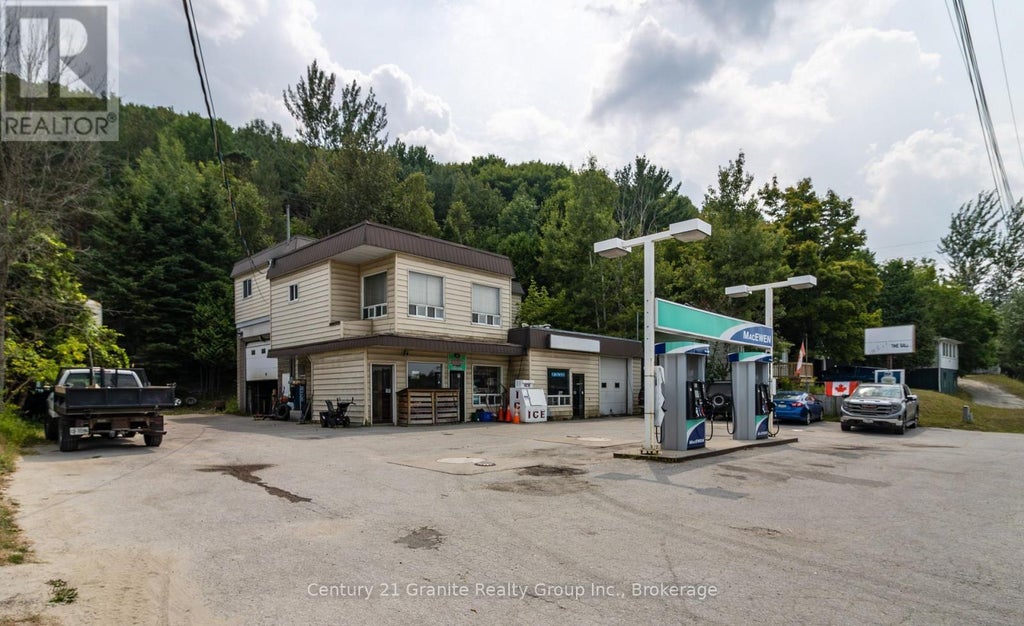 Exceptional Commercial Opportunity in the Heart of Downtown Haliburton - Prime location, multiple revenue streams, and unbeatable visibility this gas station offers it all. Situated on the main street in downtown Haliburton, this property features a fully operational gas station, propane tank filling station, and a tire shop with one lift. Currently set up for a single bay, there's excellent potential to expand into a second bay for increased service capacity. The upper level includes a large office and storage area with a 3-piece bath, as well as a spacious 3-bedroom apartment offering over 1,150 square feet of living space. Enjoy stunning views over Head Lake and a walkout to a large rooftop deck perfect for relaxation or entertaining. With its commercial zoning, easy access, and high-traffic location, this property presents a fantastic opportunity for an owner-operator or investor. Take advantage of the existing operations and explore the potential for additional business ventures in one of Haliburton's most desirable downtown locations. Haliburton County is one of the fastest-growing areas in Canada, making this the perfect time to invest in its thriving business community. (id:6289)