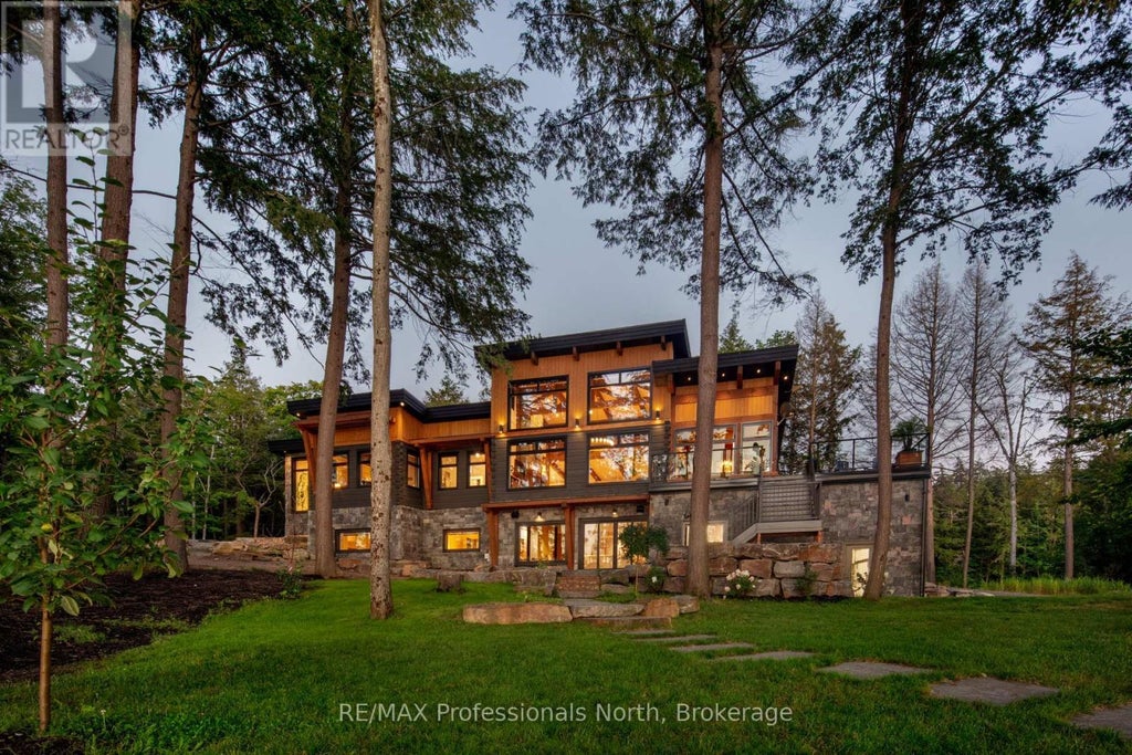 Discover luxury on the shores of Percy Lake in Haliburton's coveted cottage country. This waterfront estate located in a highly desirable new development, optimized for peace and privacy, represents the pinnacle of refined living. Nestled on over 3+ acres of extensive granite landscaped grounds, this Discovery Dream Home offers an extraordinary blend of privacy and recreational possibilities that few properties can match.The property's crown jewel is its expansive Percy Lake frontage, complete with a private dock and dedicated boat launch area. What truly sets it apart is its rare aviation access, featuring a private airplane hangar offering a versatile space attached to the home. Throughout the interior, desirable finishings showcase meticulous attention to detail and quality, with every surface, fixture, and finish carefully selected to create an atmosphere of rustic elegance and comfort. The heart of the home features a gorgeous kitchen designed for entertaining, complimented by a secondary kitchen that's perfect for catering or extended family gatherings. The primary bedroom serves as a private retreat, featuring an amazing ensuite bathroom with captivating lake views where you can wake each morning to the beauty of Percy Lake stretching before you. The fully finished walkout basement expands the living space dramatically, featuring a large rec room, an additional bedroom, plus an office/gym and plenty of extra storage space. Extremely private, this estate offers a rare opportunity to own a piece of Haliburton's most desirable waterfront while accessing 1200 acres of shared land, complete with trails for endless opportunites to explore untouched nature. This is more than a luxury home; it's a complete lifestyle destination, where every day feels like a vacation. (id:6289)