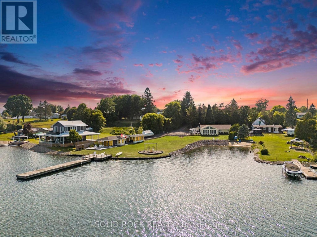 Step into refined waterfront living with this completely renovated 3-bedroom bungalow, blending cozy cottage charm with modern luxury. Nestled on a scenic waterfront of the St Lawrence River, this home offers an open-concept layout designed to make the most of its stunning views and natural light. The heart of the home is the show-stopping kitchen, featuring granite/marble countertops, a large island with a double sink, gleaming stainless steel appliances (2025) including a gas stove and classic white tile backsplash. Adjacent to the kitchen, a spacious galley with matching finishes and an oversized walk-in pantry offers lots of storage. Beamed ceilings run throughout the home, adding warmth and character. The inviting living room, centered around a gas fireplace with built-in shelving and wood accents, flows seamlessly into a striking A-frame sunroom with panoramic water views. Ceramic floors, soaring windows, and direct access to a wooden deck create the perfect space to unwind or entertain. Enjoy your morning coffee or an evening soak under the stars with a hot tub and gazebo just off the back deck. The primary bedroom overlooks the water and includes two generous closets with custom built-ins. A second bedroom enjoys the convenience of its own private powder room, while the main bathroom features elegant ceramic flooring and a rainfall shower. Ideal for hosting or generating income, two stylish bunkies sit close to the water. The larger bunkie boasts its own deck facing the lake, a partial kitchen with quartz counters, country-style sink, stainless steel fridge and vent hood, living space with Murphy bed, and a full 3-piece bath. The smaller bunkie includes a screened-in porch and its own powder room. Whether you're entertaining, relaxing, or hosting guests, every detail has been considered for easy, elegant living by the water. Approx 1 hr from Ottawa, 3 hrs from Toronto and minutes to hwy 401 & 416. (id:6289)