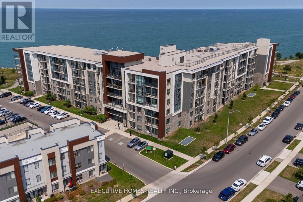 Welcome to Sapphire Condos by award-winning builder New Horizon, where luxury meets lakeside living in the heart of Stoney Creek. This beautifully maintained 1-bedroom suite offers stunning views of Lake Ontario from your private balcony. Featuring an open-concept layout with upgraded tile, wide-plank laminate flooring, and quartz countertops in both the kitchen and bathroom. The modern kitchen includes stainless steel appliances and a breakfast bar, with convenient in-suite laundry. This energy-efficient geothermal building offers premium amenities including a fully equipped gym, party room, rooftop terrace, bike storage, underground parking, and a storage locker. Located just off the QEW, steps to the lake and walking trails, and minutes to Fifty Point Conservation Area, shopping, dining, and all major amenities. Ideal for first-time buyers, downsizers, or investors don't miss this opportunity to live in a vibrant, waterfront community. (id:6289)