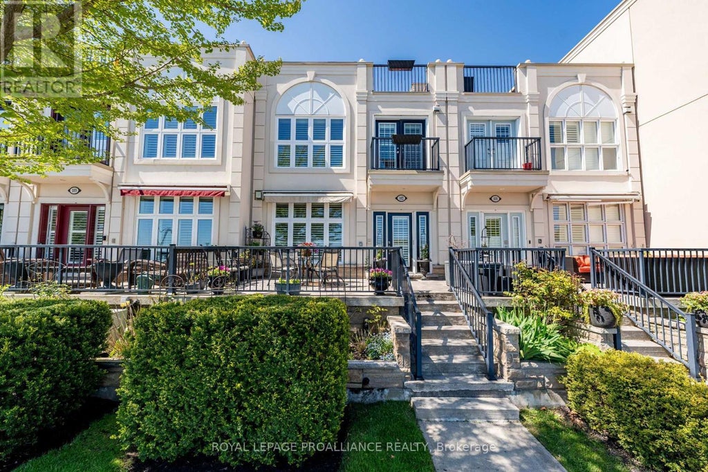 This is your chance to own a true waterfront lifestyle without giving up the freedom of freehold ownership. Perfectly located steps from Cobourg's marina, beach, and downtown, this stunning townhouse is one of only a handful of its kind, offering over 2,000 sq ft of stylish living with unbeatable walkability and panoramic lake views. Enjoy three private outdoor spaces: a welcoming front terrace, a Juliette balcony off the primary suite, and a rooftop terrace where Lake Ontario is your backdrop for morning coffee or evening gatherings. Inside, natural light fills the open-concept main floor featuring a gas fireplace, floor-to-ceiling windows, and a kitchen with built-in appliances and breakfast bar. The spacious dining area is perfect for entertaining or could easily double as a cozy den or home office. Upstairs, the primary suite includes a walk-in closet, ensuite, and French doors to the Juliette balcony. Two additional bedrooms, a full bath, and laundry complete this floor. The top level is a retreat of its own, with a family room, 3-piece bath, and walkout to the rooftop terrace. Recent updates include front windows and doors plus a replaced garage roof. Best of all, for approx. $140/month(POTL) your snow removal and lawn care are handled giving you the ease of condo-style living without paying todays rising condo fees. This home is perfect for families, professionals, or downsizers seeking a rare blend of low maintenance living, breathtaking views, and a location that brings the very best of Cobourg right to your doorstep. (id:6289)