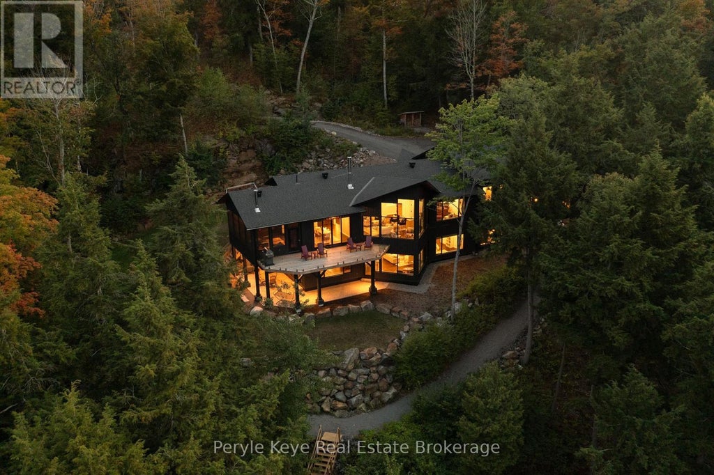 Luxury comes in many forms, but the most thoughtful designs don't compete w/ nature - they showcase it. At this lakefront masterpiece, the view isn't an accessory - it's the headline! Set on 4.39 Ac w/ 298 of pristine Lake Vernon shoreline, this newly completed 6,200+ sq ft lakefront retreat (including a 900 sq ft guest suite) is a masterclass in bold & refined Muskoka living. Located in Ashworth Bay-an exclusive, high-end community w/ an uncrowded shoreline & no neighbours in sight-just 15 min to Huntsville by car or boat. At this end of the lake, serenity & adventure coexist. Step inside & be WOWED! Panoramic lake views. Expansive 16 ceilings in the great room. Natural light floods the space & walls of glass erase the line between inside & out! A Valcourt Frontenac fireplace adds warmth, turning gatherings into experiences. Every inch of this home was designed to elevate how you live, relax & entertain. Seamless indoor-outdoor flow invites lake life at its best. A frameless glass deck soaks in breathtaking views, & the Muskoka room w/ a wood-burning stove extends your enjoyment beyond summer. At the shoreline, the floating dock offers deep water off the edge & a sandy entry at shore. The fully finished walkout lower level features 3 bedrooms plus space for a rec room, gym, or media lounge. Step outside the primary suite to a stone patio pre-wired for a hot tub. A self-contained guest suite offers 2 bedrooms, a full kitchen, private laundry & its own stone patio. The oversized, insulated & heated garage features 12' doors, large windows, an EV-ready panel & smart home wiring. Designed for every season w/ in-floor radiant heating, a Mitsubishi ZUBA heat pump, & a whole-home automatic generator & more. Bell Fibre internet keeps you connected. Some properties add to your portfolio. A rare few expand your way of living. This one does both. Design that preserves your time, protects your privacy, & recentres your perspective. This one will become your favourite chapter! (id:6289)