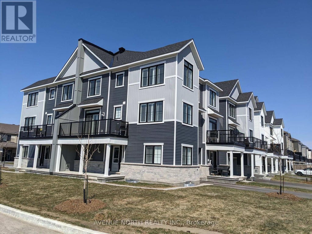 Welcome to this rare, low-maintenance, sun-filled 3-bedroom + den corner unit in the desirable Half Moon Bay community. Situated on a large corner lot, this 1,835 sq. ft. home (builder's plan) offers over $90,000 in upgrades and is just minutes from Barrhaven Town Centre, schools, parks, and everyday conveniences. Features: 3 bedrooms + den 2.5 bathrooms Large garage with inside entry Private den, perfect for a home office Large sunny balcony off the living space This bright and stylish corner unit offers functional and comfortable living across three levels. The welcoming front porch opens to a foyer with a storage room, garage access, and a private den perfect for working from home. Upstairs, the open-concept living area features a spacious kitchen with ample cupboard space, quality finishes, and room for entertaining. The adjacent dining and great room benefit from abundant natural light, and a patio door leads to a sunny balcony ideal for your morning coffee. The top floor boasts a light-filled primary bedroom with a walk-in closet and ensuite, two additional bedrooms with ample closet space, and a beautifully upgraded main bath with a double shower. (id:6289)