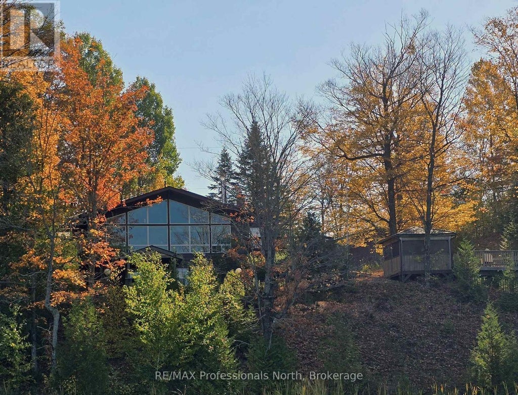 Tucked away on beautiful Esson Lake, this private four-level backsplit offers deep water off the dock, incredible lake trout fishing, and several miles of clean, navigable shoreline to explore. This deep, clean lake is a true gem for those seeking peace, water recreation, and nature at their doorstep. The main level features a bright, open-concept layout with soaring cathedral ceilings, an upgraded kitchen, and wall-to-wall windows showcasing stunning full lake views. A cozy wood stove adds warmth and character, and there is direct access to a lakeside outdoor kitchen perfect for entertaining. Upstairs, you'll find a spacious primary suite with ensuite, a second bedroom, and a convenient 2-piece bath. The lower level includes another guest bedroom, office space, a 3-piece bath with laundry, and a utility room. The walkout basement offers a full rec room with pellet stove and opens directly to the hot tub deck overlooking the water. Enjoy evenings in the screened gazebo with panoramic lake views. An oversized two-car garage with workshop adds year-round functionality, and the finished loft above is ideal for a gym, art space, or yoga studio. Located just minutes from Wilberforce for essentials like groceries, LCBO, gas, and dining, and only 20 minutes from the Village of Haliburton where you'll find additional amenities including healthcare services, restaurants, shops, and schools. This is a rare opportunity to enjoy complete privacy and comfort on one of Haliburton County's most desirable lakes. (id:6289)