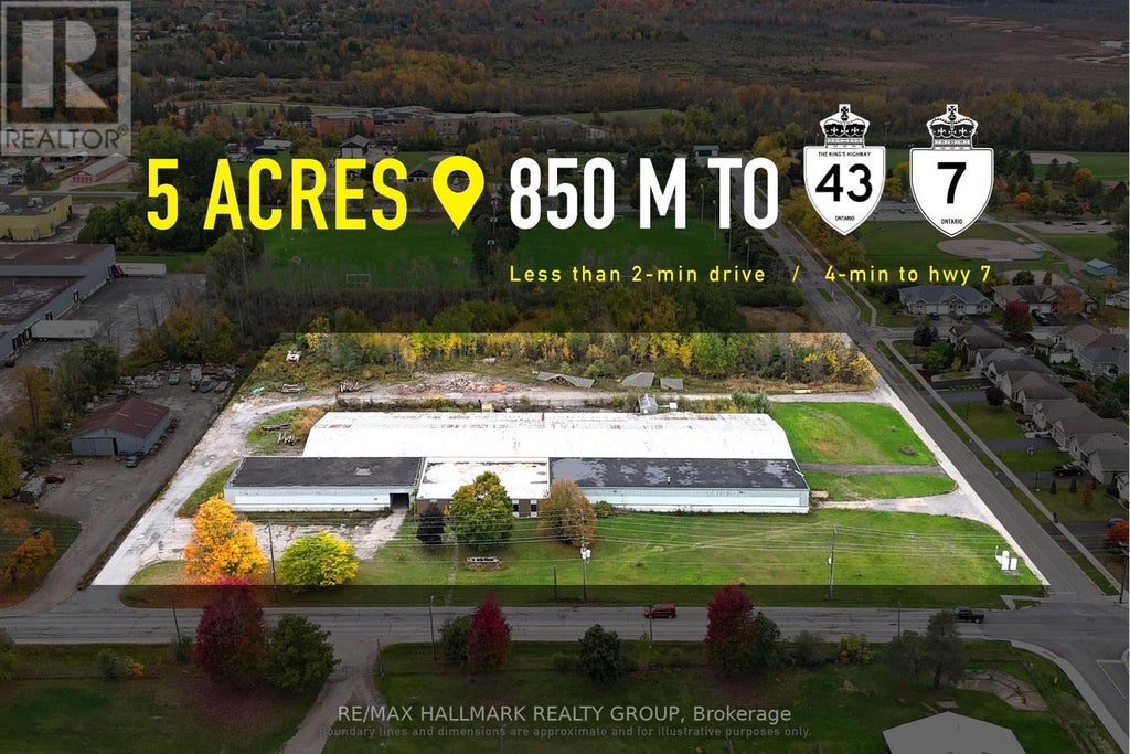 Located at 1847 Rogers Rd in Perth, this 5-acre industrial site delivers +/- 51,093 sq ft (+/- 50,423 sq ft warehouse & +/-670 sq ft office) with two dock-level doors, one drive-in bay, a gravel yard enabling low-friction heavy-vehicle circulation, and ample hydro and natural gas-vacant possession lets you mobilize day one. Fronting the Hwy 7 corridor ~80 km west of Ottawa and ~86 km from Kingston, the property sits on a direct east-west freight route with fast linkage to Hwy 417 toward Ottawa/Montréal and the 416/401 spine to Toronto and the Seaway-an efficient single-campus platform to push throughput, stage trailers, and scale operations. (id:6289)